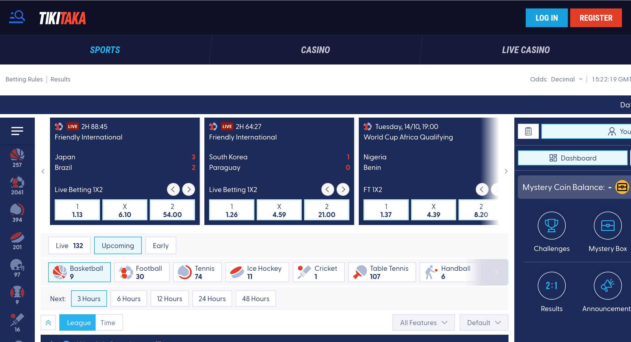 The platform features a football-themed design that makes browsing enjoyable for its target audience. In-play betting is one of its strong points, with real-time updates and dynamic odds that keep players engaged throughout the match. While football is the central focus, TikiTaka also provides betting options for basketball, tennis, and other sports, albeit with less depth.